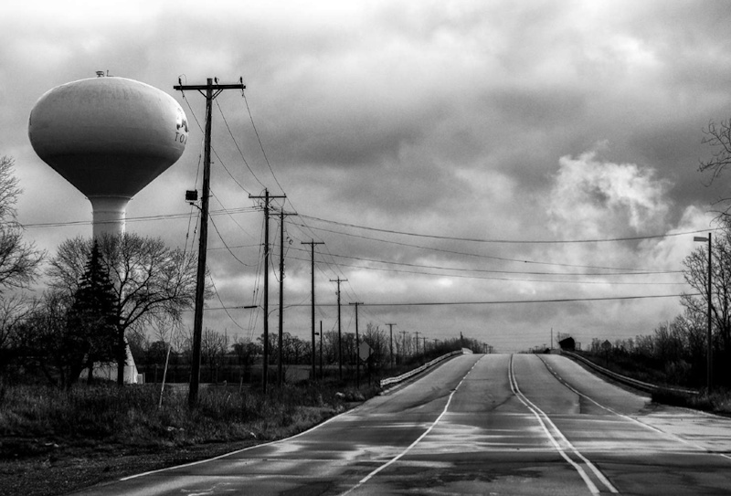La mostra fotografica si sviluppa secondo questa visione. Realtà, memoria e poesia si intrecciano lungo le strade blu della provincia americana, rielaborando percorsi dell’immaginario collettivo e rievocando inevitabilmente luoghi e storie: la poesia di Walt Whitman e gli epitaffi di Edgar Lee Masters, la letteratura epica di John Steinbeck, l’universo minimalista dell’ordinary people di Raymond Carver, l’America di Truman Capote di “A sangue freddo”, primo romanzo-reportage, paradigma assoluto e geniale invenzione di un nuovo genere letterario; il Texas e i racconti di frontiera di Joe R. Lansdale, l’umanità precaria e surreale dei personaggi di Barry Gifford; i silenzi inquietanti e sospesi, la solitudine e l’attesa dei paesaggi umani dei dipinti di Edward Hopper; la fotografia sociale di Walker Evans e Dorothea Lange del progetto del Presidente Roosevelt della Farm Security Administration e lo sguardo sui volti dei farmers e dei pionieri durante la Grande Depressione; il riecheggiare di suoni e di canzoni del soundtrack della nostra vita, una colonna sonora immortale, dal western swing al blues, dal rock al folk passando da Pete Seeger e Woody Guthrie per finire a Bob Dylan; il filo che lega l’esperienza visionaria di David Lynch, le sue rappresentazioni oniriche dell’inconscio e dell’invisibile nascosto nella quotidianità al cinema della memoria dei luoghi e delle storie di Peter Bogdanovich. Come non ricordare “The Last Picture Show”, sintesi assoluta e moderna del cinema dei grandi Maestri, sospesa tra paesaggi, drammi interiori e memoria, riti di iniziazione e maturità.